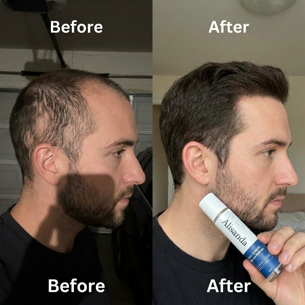 People don’t talk about how hair loss messes with your mental health. I wouldn’t date, go out, or even let people touch my hair. This roller with the serum felt like my last shot — and it worked. It’s filling in, finally.